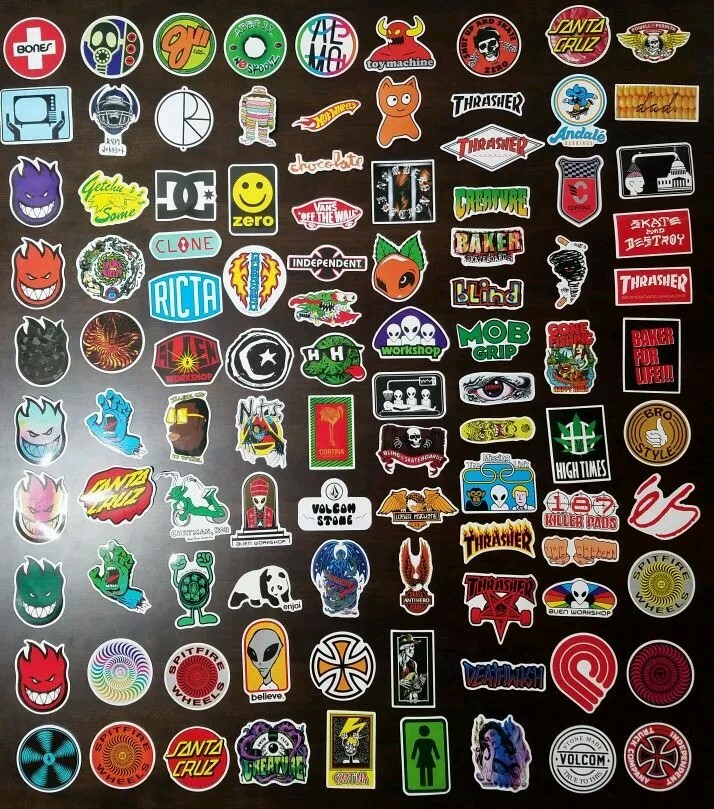 100pcs Skateboard Company LOGO Stickers Santa Cruz, Spitfire, Toy Machine Alien