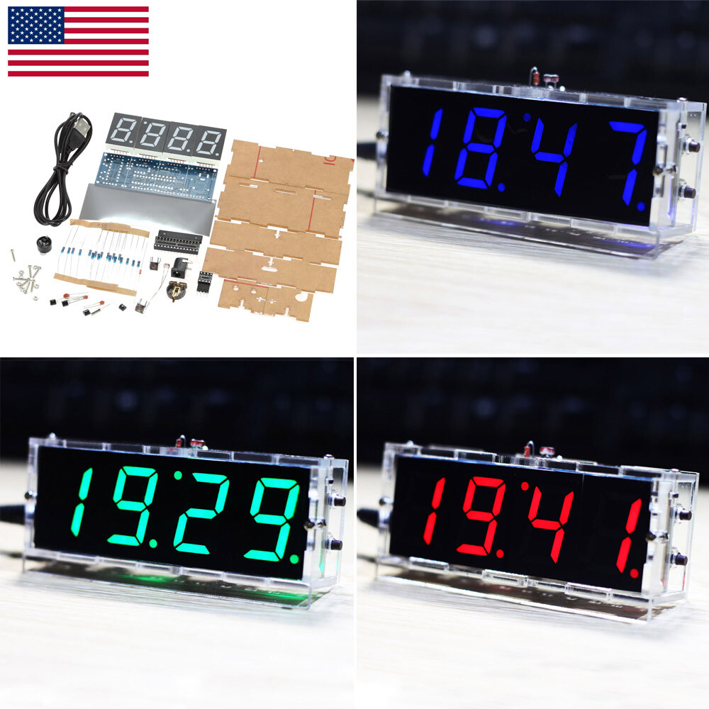 4-digit LED Digital Desk Clock Electronic DIY Kit Light Control Time W/Case USA