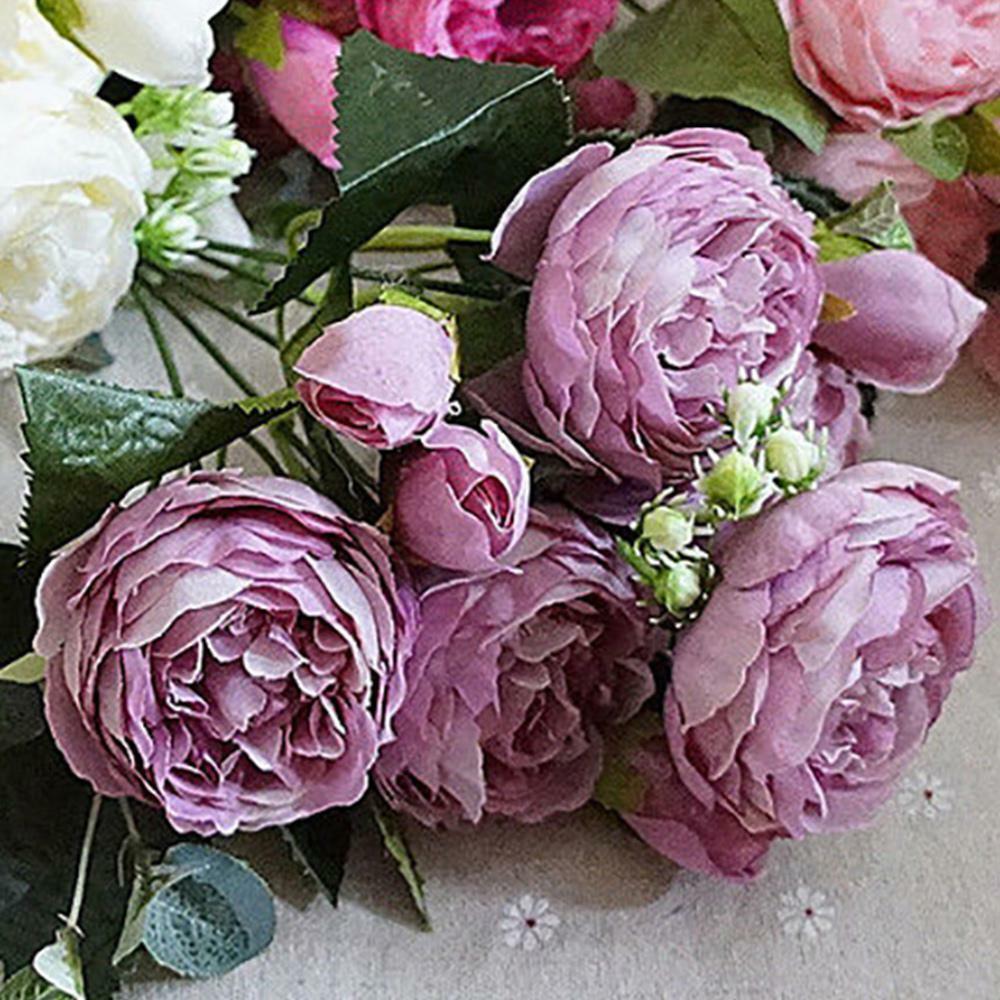 5Heads Fake Rose Artificial Silk Peony Flowers Bridal Wedding Bouquet Home Decor