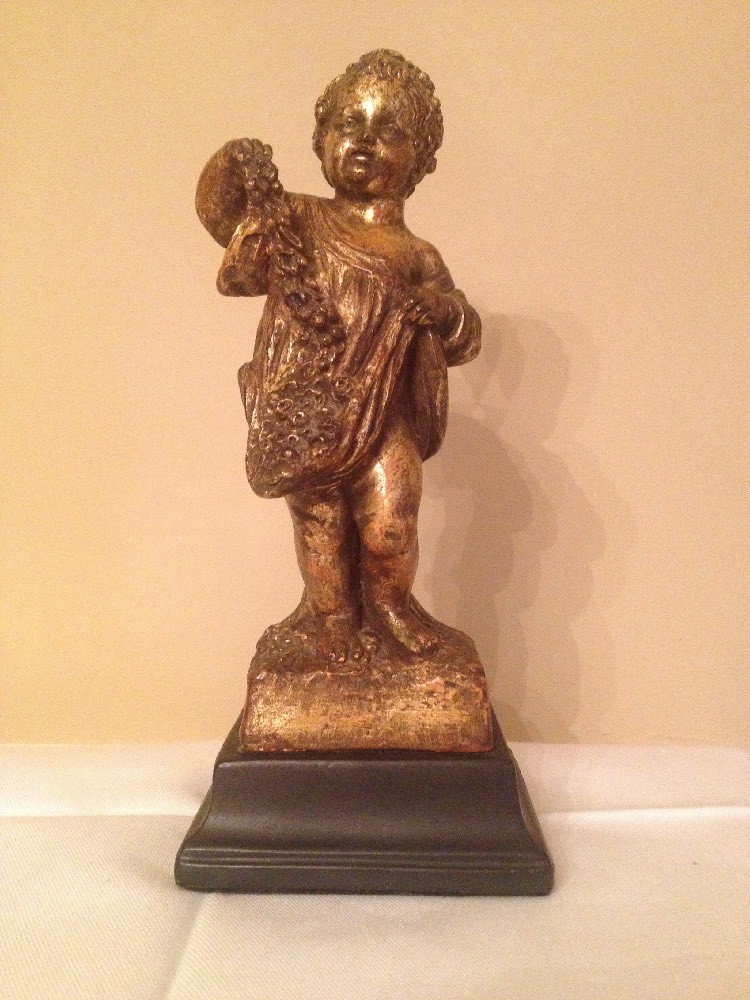 Antique Girl Sculpture with Flowers Angel-Like on Stand from Italy – 1 DAY SHIP!