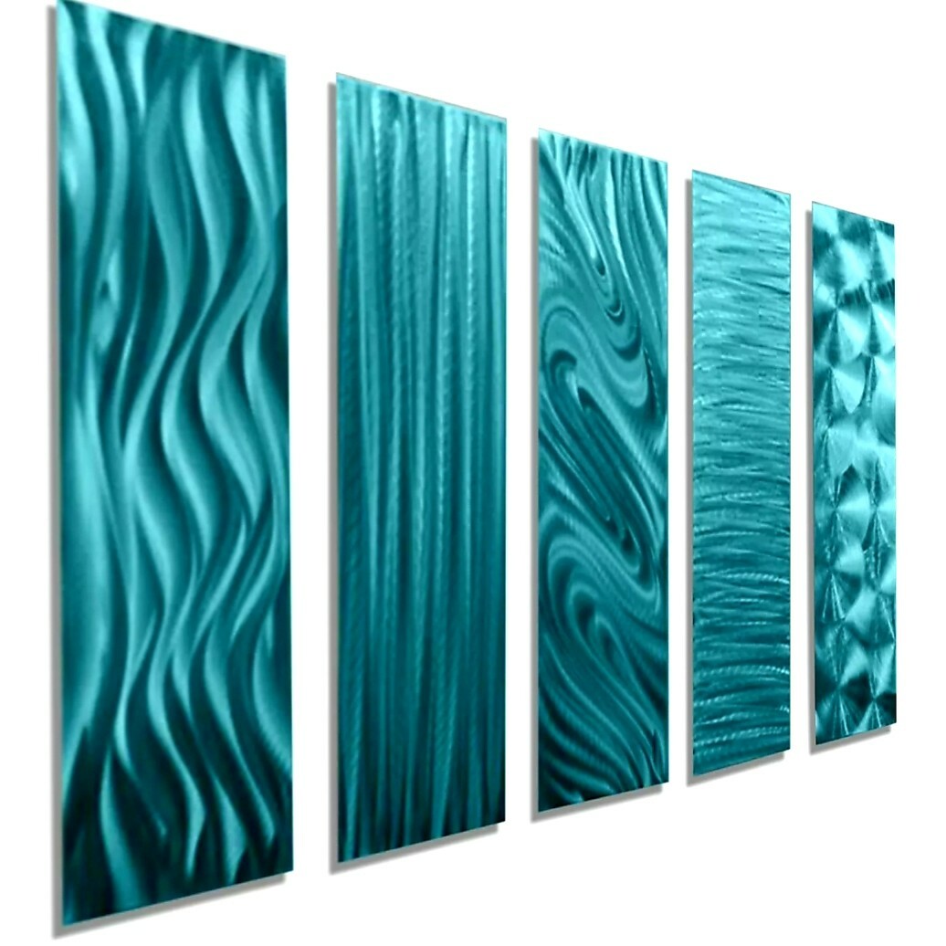 Aqua Metal Wall Art – Signed Original Panel Art Modern Wall Sculpture Jon Allen