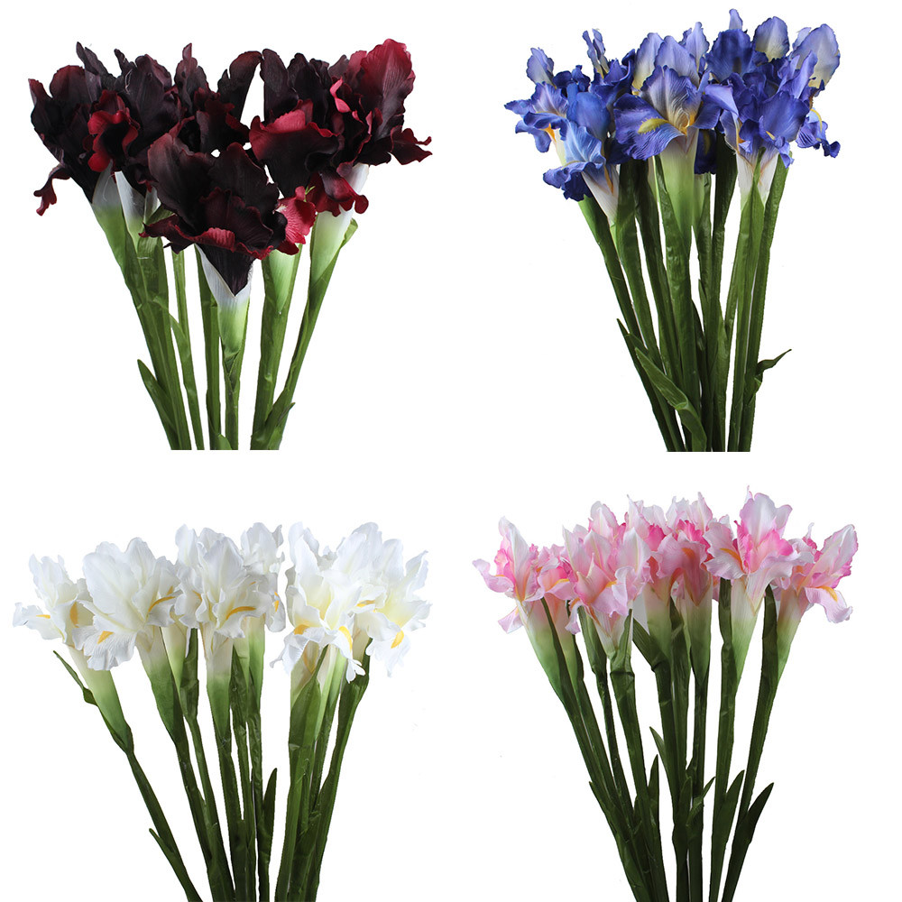 Artificial Silk Flowers iris Real Touch Fake Wedding Bouquet Home Vase Decor