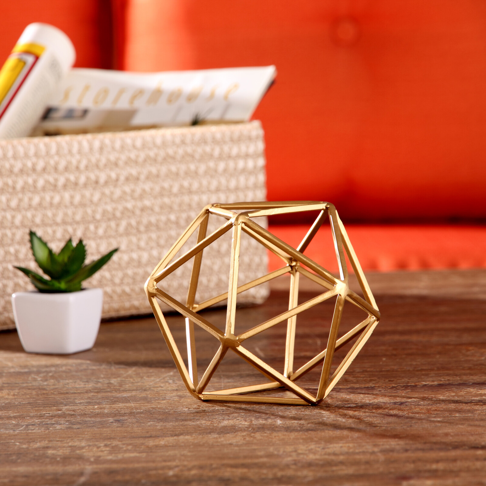 Better Homes & Gardens Geometric Tabletop Sculpture Icosahedron, Medium, Gold