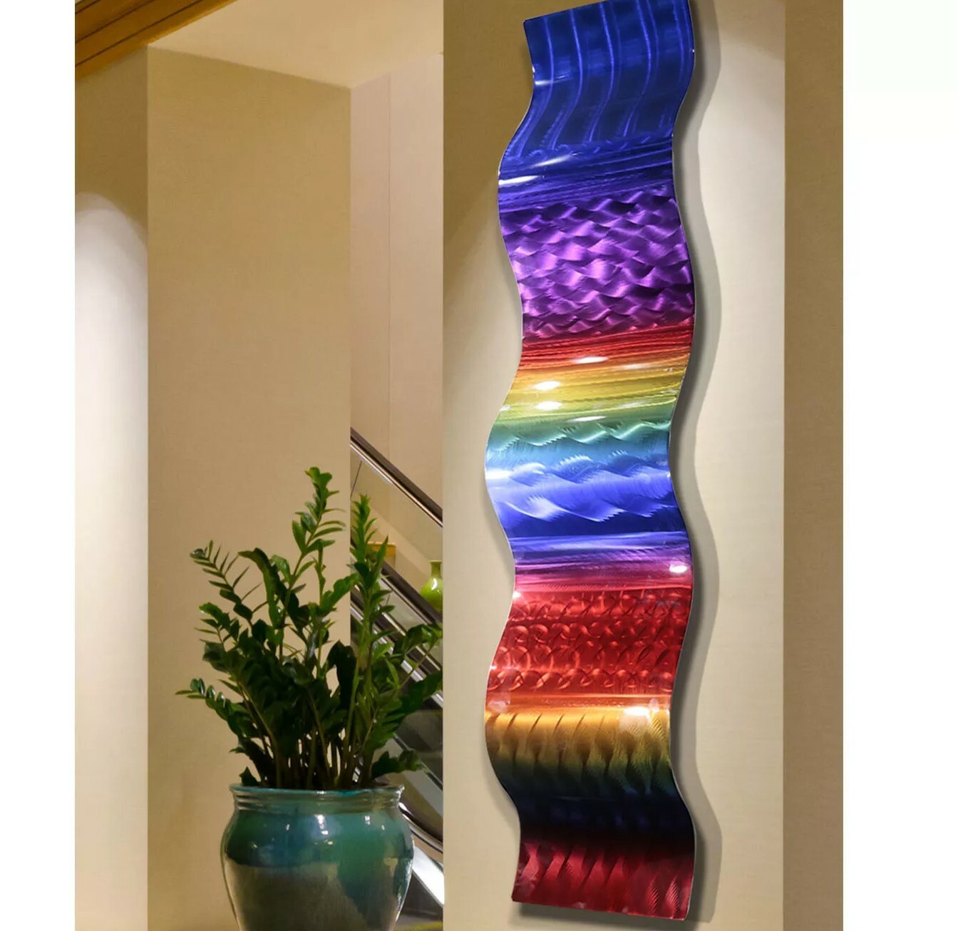 Large Metal Wave Wall Art Accent Sculpture Modern Blue Red Gold Decor Jon Allen