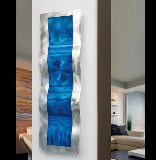 Metal Wall Art WAVE Sculpture ULTRA MODERN Silver Blue SIGNED ORIGINAL Jon Allen