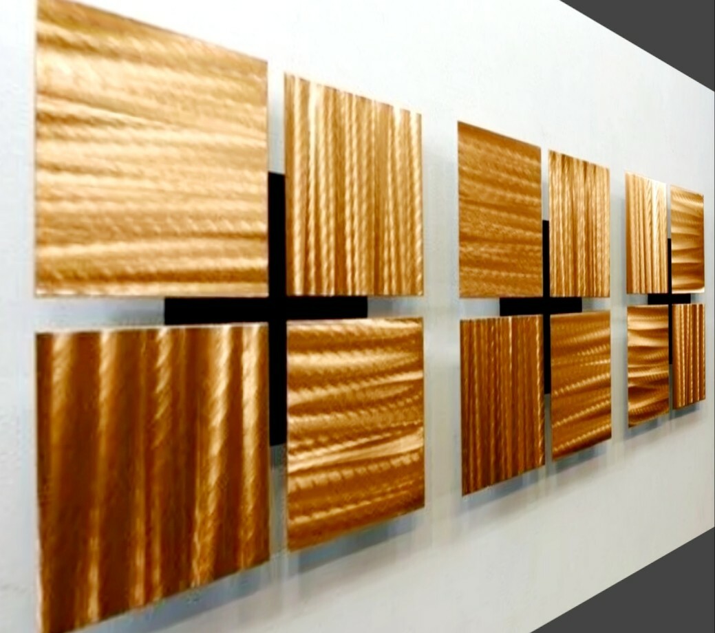Modern Metal Wall Art Golden Copper Accent Sculptures Decor Original Jon Allen