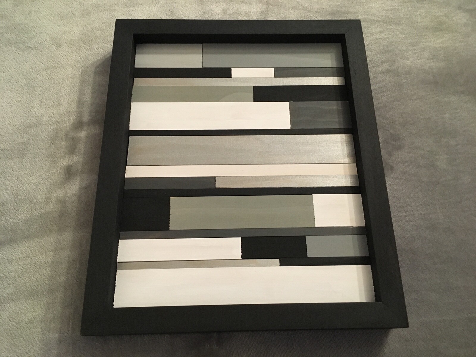 Modern Minimalist Geometric Wood Sculpture, Black, White Silver, Grey 10″x12″