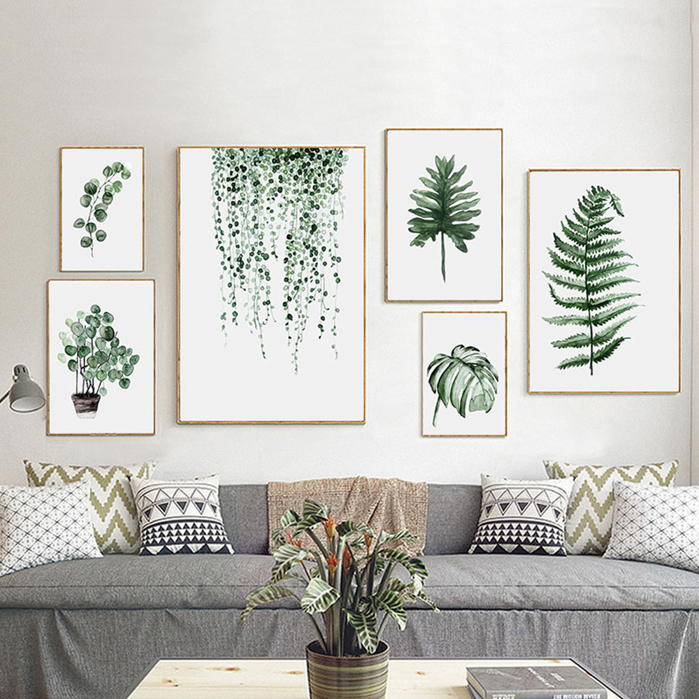 Modern Nordic Green Plant Leaf Canvas Art Poster Home Living Room Wall Decor Lot