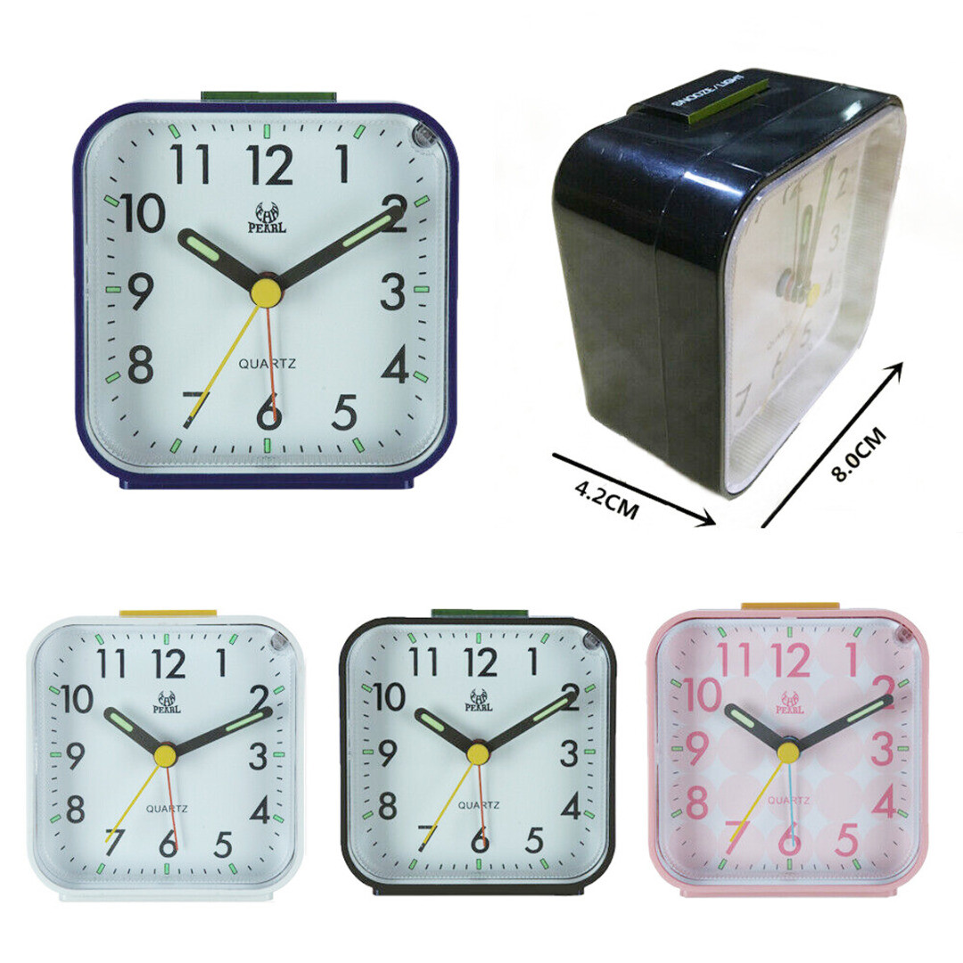 Small Battery Operated Analog Travel Alarm Clock Silent No Ticking Home Decor